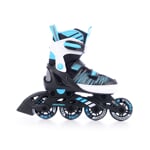 Dětské nastavitelné brusle pro rekreační i kondiční bruslení. Brusle jsou určeny pro rekreační sport, začínající a pokročilé malé bruslaře. Měkká rychleschnoucí výstelka zajišťuje pohodlí dětské nohy. Vnitřní botička je dobře anatomicky tvarována, vnější plastový skelet drží pevně kotník. Tyto dětské brusle jsou velmi vhodné pro začínající bruslaře díky funkční konstrukci a anatomicky řešenému tvaru skeletu i vnitřní botičky. Brusle mají jednoduchý a pohodlný systém zvětšení velikosti tlačítkem na boční straně skeletu. Brusli lze nastavit na 4 velikosti.