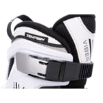 Plastové chrániče na vnější straně bruslí jsou vyměnitelné. Dírky na tkaničky jsou osazeny pevnostními kovovými kroužky pro ochranu tkaniček a lepší utahování. Díky použití voskovaných tkaniček o šířce 10mm je možné snadnější postupné utahování tkaniček a efektivnější uzavření skeletu brusle k chodidlu.