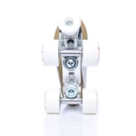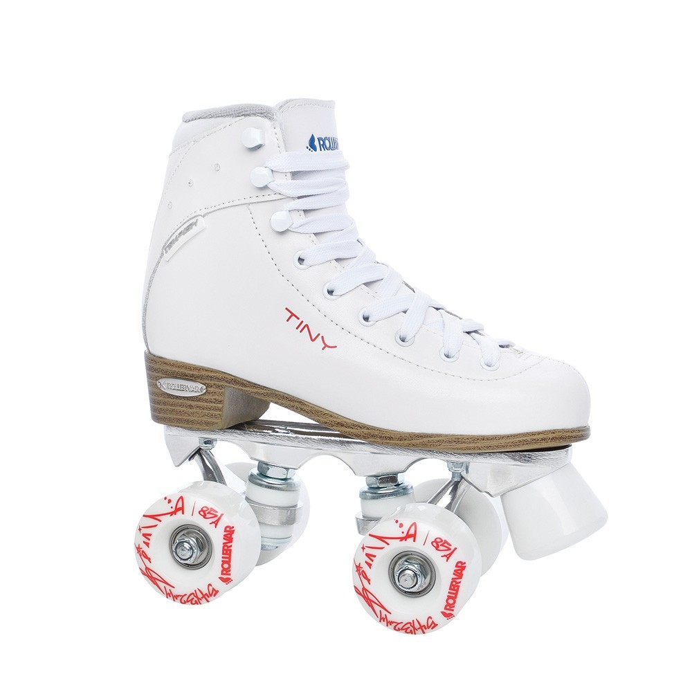 Klasické kolečkové brusle jsou vybaveny čtyřmi kolečky, která jsou ve dvou řadách. Vhodné pro rekreační a sportovní fitnes kondiční bruslení, tanec na bruslích. TINY PLUS jsou vyrobeny z pravé hovězí kůže a svršek je osazen třpytivými kamínky. Středně vyztužená bota s přechodem ke komfortnímu (měkčímu) vyztužení v oblasti nad kotníkem, zajišťuje pohodlný pohyb. Vnitřní materiál je vlhkost odvádějící BK mesh. Podvozek je slitina AL s brzdou. Osazen kolečky Quad 54x32mm 82A. Ložiska ABEC 7 chrome.