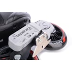 Brusle jsou vybaveny revolučním elektromechanickým brzdícím systémem ovládaným bezdrátovým ovladačem. Brždění na těchto bruslích je nyní komfortnější, bezpečnější, jednodušší a efektivnější oproti klasické brzdě umístěné za zadním kolečkem! Tento model s brzdou EBS se doporučuje pro uživatele s váhou do 90 kg. Více informací o tomto patentovaném českém výrobku najdete na adrese: www.stopskate.com