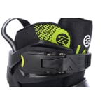 Botu uzavřete pomocí klasických tkaniček a chodidlo pevně zafixujete ve skeletu nártovým páskem na suchý zip. Horní část skeletu uzavřete za pomocí stahovacího pásku s mikropřezkou.