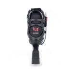 Botu uzavřete pomocí klasických tkaniček a chodidlo pevně zafixujete ve skeletu nártovým páskem na suchý zip. Horní část skeletu uzavřete za pomocí stahovacího pásku s mikropřezkou.