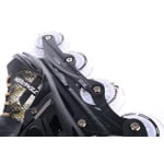 Středně vysoký skelet zajišťuje pevnou oporu chodidla a stabilní vedení brusle. Vnitřní dvojitá konstrukce lineru s pohodlným polstrováním nabízí komfortní usazení nohy a stabilitu v kotníkové oblasti. Nově je vnitřní botička pevně fixovaná ke skeletu, což zajišťuje ještě lepší stabilitu a komfort při bruslení.