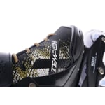 Brusli uzavřete pomocí klasických tkaniček, nárt fixuje pásek na suchý zip, a horní část skeletu zpevňuje stahovací pásek s přezkou – kombinace, která zajistí bezpečné a komfortní obepnutí nohy.