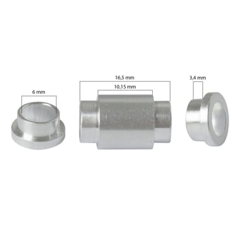 Sada obsahuje 8 kusů spacerů (distančních vložek) mezi ložiska a 16 ks vymezovacích podložek mezi podvozek a ložiska. Sada je určená pro osky s vnitřním průměrem 6 mm. Celková délka spaceru s vymezovacími podložkami: 23,3mm.
