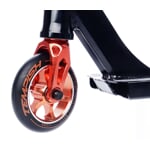 Kolečka o průměru 110 mm, tvrdost 88A Super Hi-rebound s hliníkovým jádrem, vysoce kvalitní ložiska ABEC 9 chrome top speed, hi-precision s gumovými prachovkami.