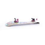 Skateboard je vhodný pro začátečníky, kteří se chtějí naučit něco nového ve skateparku nebo jen tak jezdit po ulici. Deska z čínského javoru je těžší a určená primárně pro ježdění po ulici a učení základních triků. Trucky mají standartní velikost 5“.
