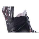 - Odolný skelet – vyroben z kvalitního kompozitního plastu, který vyniká nízkou hmotností, pevností a odolností vůči nárazům. Spolehlivě chrání chodidlo před údery pukem nebo hokejkou.