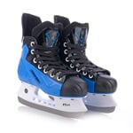 Speciální hokejové brusle TEMPISH RENTAL R46 KIDS jsou určeny do půjčoven a jsou vhodné pro začínající malé bruslaře. Skelet brusle má jedinečnou konstrukci, je vyroben z jednoho kusu kompozitního odolného plastu, zajišťuje proměnnou tvrdost pro optimální fixaci nohy. Skelet je velmi lehký, přitom pevný a odolný. Skelet je velmi dobře anatomicky tvarovaný, zejména v oblasti Achillovy šlachy a kotníků. Skelet poskytuje velmi dobrou podporu a ochranu kotníků. O pohodlí se starají pěnové výstelky, zejména v oblasti kotníků a Achillovy šlachy. Jazyk má anatomický tvar, je středně silně vyztužený. Vnitřní materiál je vyroben z materiálu CAMBRA, který je otěru odolný a zateplený, zajišťující stabilní fixaci nohy v brusli a který je navržen tak, aby odolal každodennímu použití v půjčovnách. Také efektivně odvádí vlhkost a dobře vysychá po skončení bruslení. Brusle je osazena kvalitním nožem z nerezavějící oceli. Označení velikosti na patě usnadňuje manipulaci a urychluje práci personálu v půjčovnách!