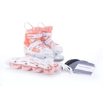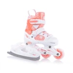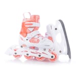 Dětské roztahovací brusle RS TON GIRL DUO LED se speciální duální konstrukcí pro celoroční rekreační bruslení. Konstrukční systém umožňuje záměnu zimních bruslí za podvozek s kolečky. Jednoduchým povolením dvou šroubů přeměníte zimní brusle na kolečkové inline brusle a naopak.