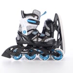 Dětské roztahovací brusle se speciální duální konstrukcí pro celoroční rekreační bruslení. Konstrukční systém umožňuje záměnu zimních bruslí za podvozek s kolečky. Jednoduchým povolením tří šroubů přeměníte zimní brusle na kolečkové inline brusle a naopak.
