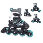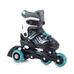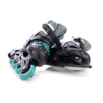 FunActiv TRILO 4in1 jsou univerzální roztahovací dětské brusle, které díky chytré konstrukci nabídnou hned čtyři různé varianty použití. Jediný model tak dětem umožní bruslit na ledě, jezdit na inlinech, učit se stabilitu na širokém podvozku a vyzkoušet i styl jízdy na quad kolečkových bruslích – bez nutnosti kupovat více párů.