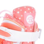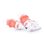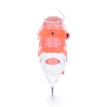 Dívčí lední brusle určeny pro rekreační sport, tedy začínající bruslaře. Měkká rychleschnoucí výstelka zajišťuje pohodlí dětské nohy. Efektní poloprůhledný cuff je vyroben z PE, který si zachovává houževnatost i při teplotách okolo -25°C. Pevné dotažení zajistí šněrování, nártový pásek na suchý zip a oboustranná přezka s pojistkou proti samovolnému otevření. Vnitřní bandáž botičky je velmi pohodlná a má výborné tepelně izolační vlastnosti. Brusle mají jednoduchý a pohodlný systém zvětšení velikosti tlačítkem na boční straně skeletu. Brusli lze nastavit na 4 velikosti. Novinkou je více ploché zakřivení nože, které zajišťuje větší stabilitu pro začínající bruslaře.