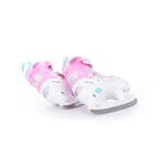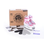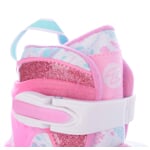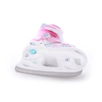 Dívčí lední brusle ICE SKY GIRL s hokejovým nožem jsou určeny pro rekreační sport, začínající až pokročilé bruslaře. Měkká rychleschnoucí výstelka zajišťuje pohodlí dětské nohy. Efektní poloprůhledný límec je vyroben z PE, který si zachovává houževnatost i při teplotách okolo -25°C. Pevné dotažení zajistí šněrování, nártový pásek na suchý zip a oboustranná přezka s pojistkou proti samovolnému otevření. Vnitřní bandáž botičky je velmi pohodlná a má výborné tepelně izolační vlastnosti. Brusle mají jednoduchý a pohodlný systém zvětšení velikosti tlačítkem na boční straně skeletu. Brusli lze nastavit na 4 velikosti.