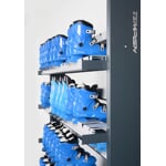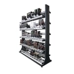 Oboustranný regál na 70 párů zimních bruslí pro instalaci do prostoru.
