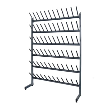 Jednostranný regál na 36 párů zimních bruslí pro instalaci ke stěně.
