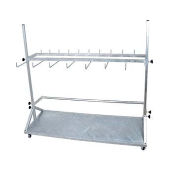 Stojan je vybaven gumovými kolečky pro snadné přemístění. Dvě kolečka jsou s brzdou pro zafixování stojanu ve stabilní poloze.