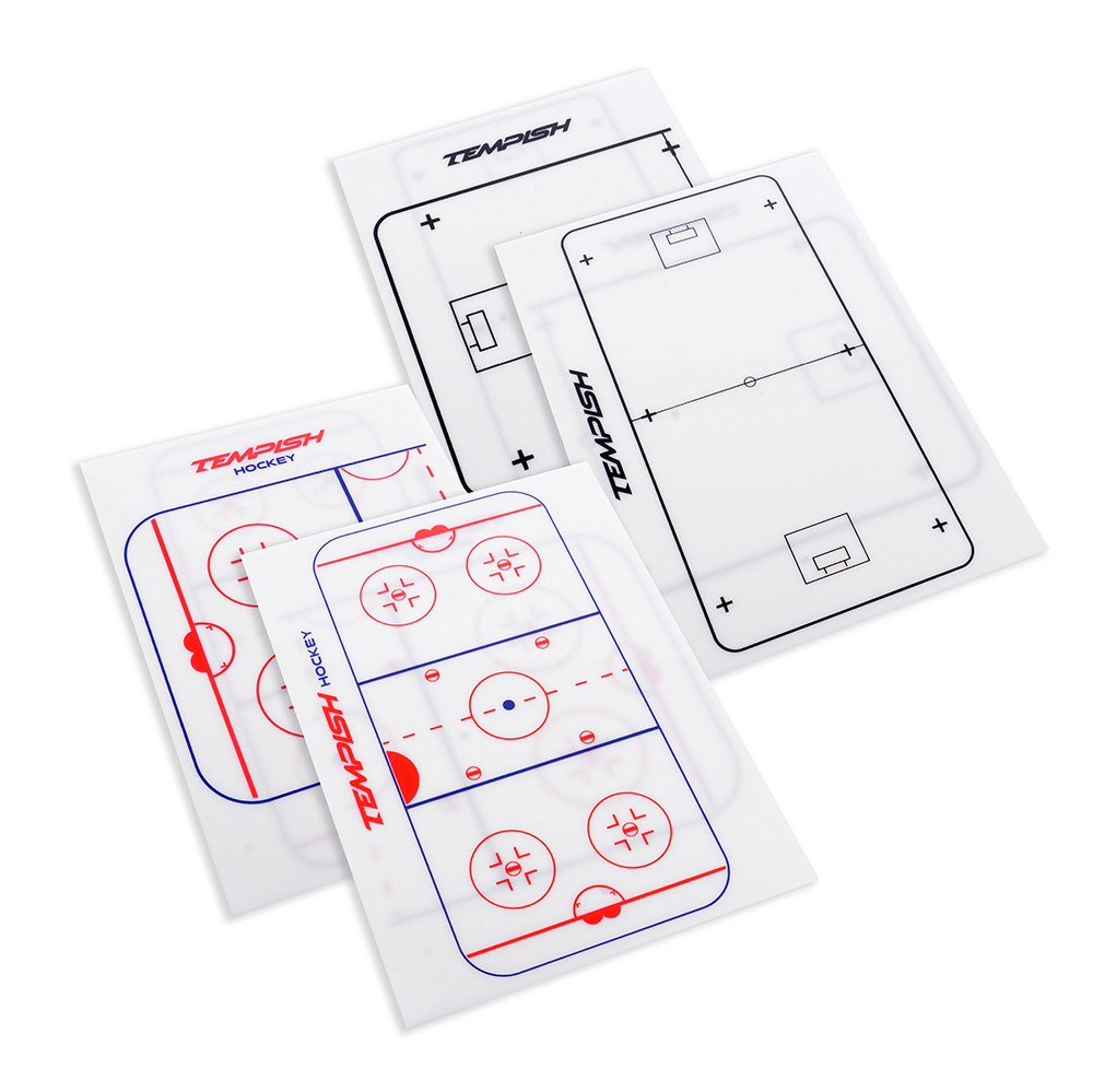 Oboustranná trenérská taktická tabulka o rozměrech 33x24 cm. Jedna strana obsahuje celé hřiště, druhá detail na polovinu hřiště.